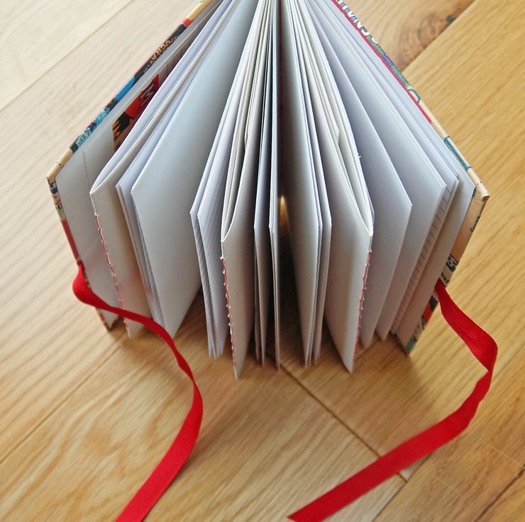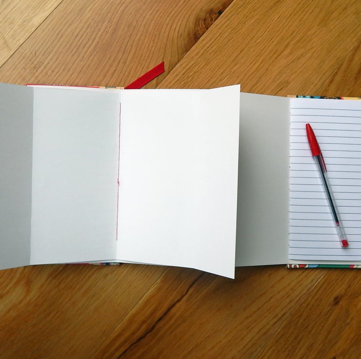 - The book fastens with ribbons, so you can open the book from either side, or you can unfold the whole concertina - as shown in the photos.