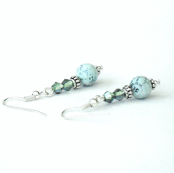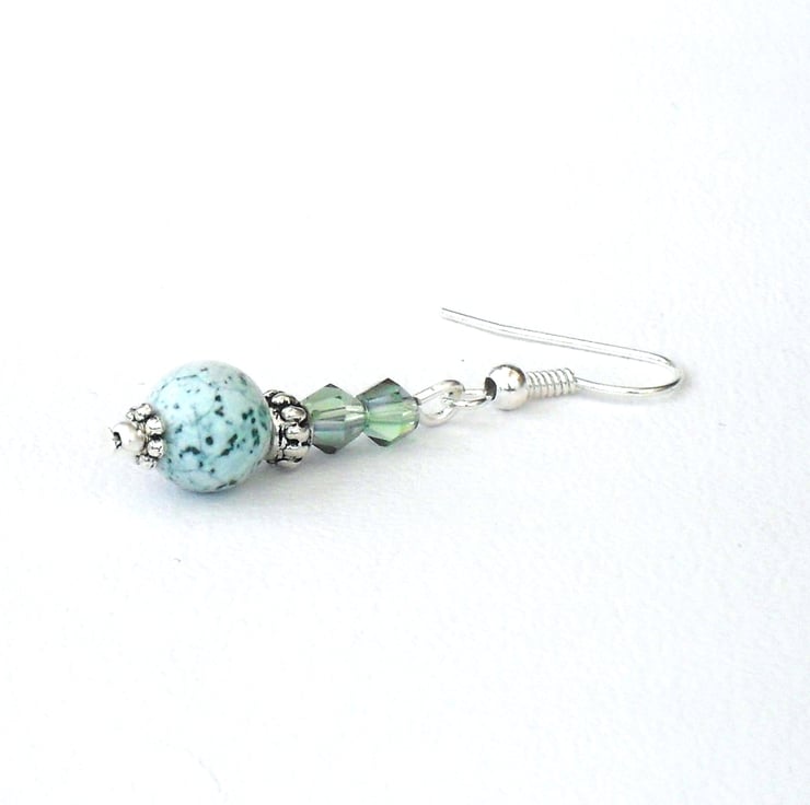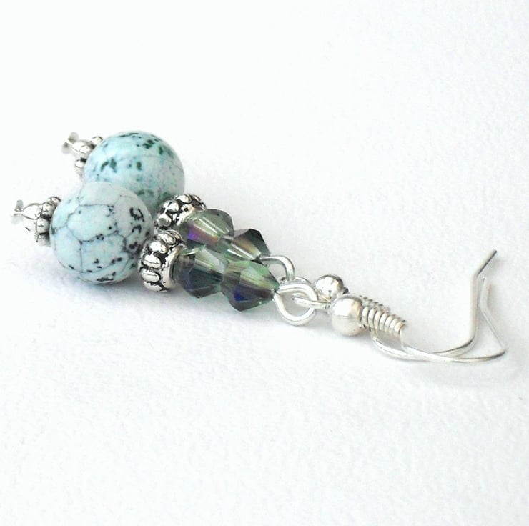 I love these green fire agates - they're a lovely fresh shade of green. They combine beautifully with the crystals to make these unique earrings.