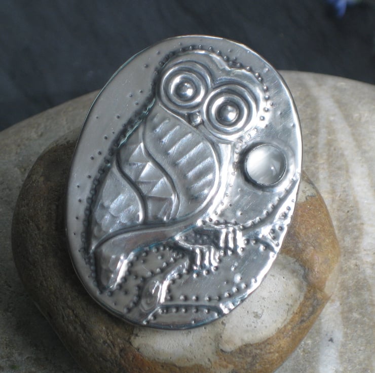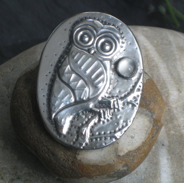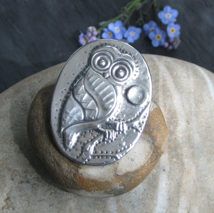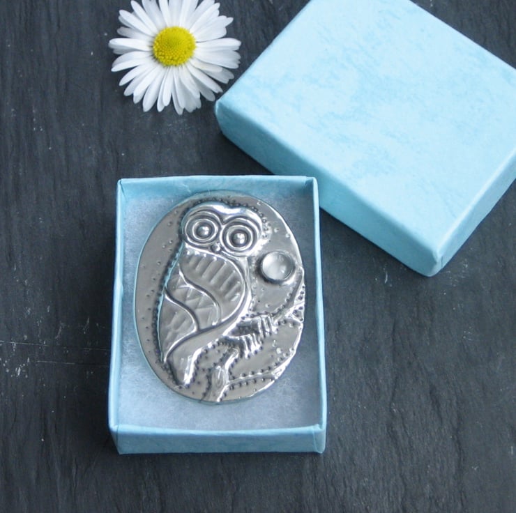 This little character sits beneath a moonstone moon, and has been handmade in modern lead-free pewter. Measuring 44mm x 33mm, it has a a 25mm pin with safety catch. Presented in an attractive gift box (may differ from that shown). A great gift for a 10th Wedding Anniversary or Birthday.