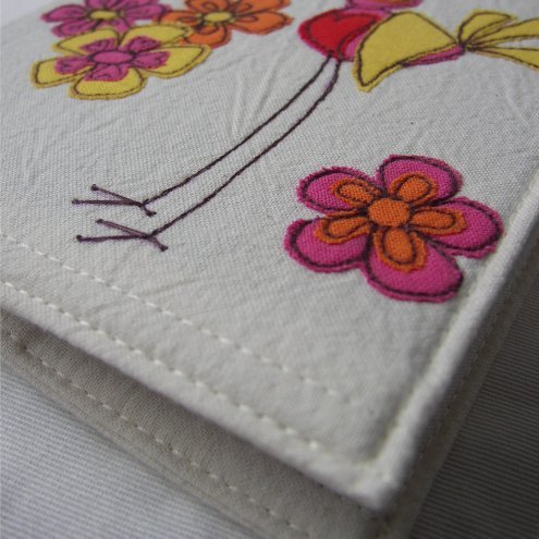 the bird, bees and flowers design is in cotton fabric, which is appliqued onto pre-washed calico, before being "drawn" on with free machine embroidery.