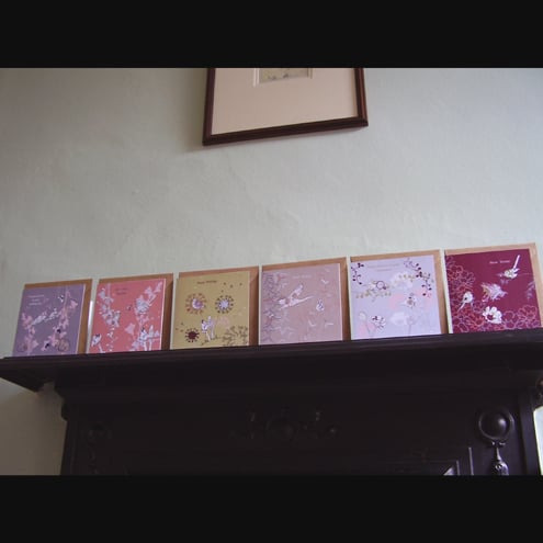 All cards are designed by myself then printed onto 220gsm matt photographic paper and mounted onto 300gsm recycled card for a professional finish. My details are stamped on the back, the inside is left blank for your own message.