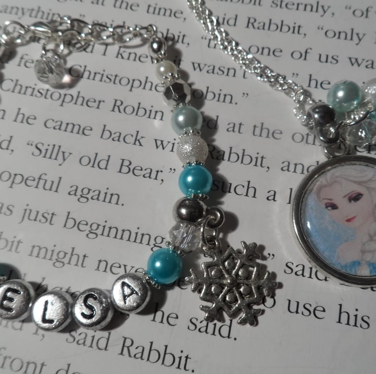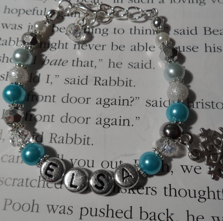 The bracelet has a cute snowflake with the name Elsa you can have any name you require just let me know at the checkout.