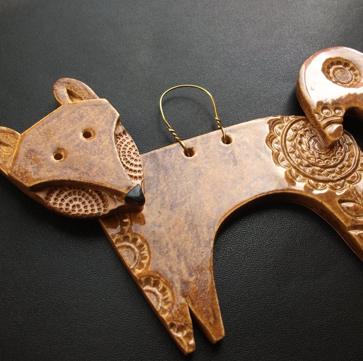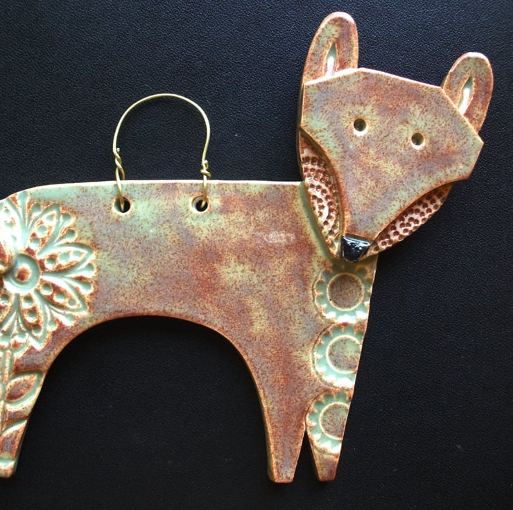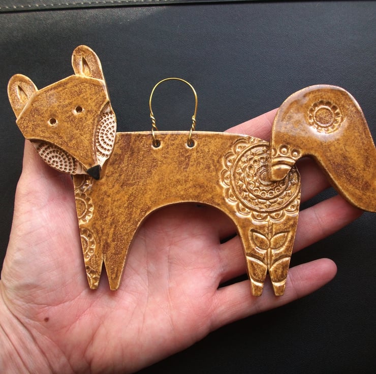 This cute little fox is made from white earthenware clay and decorated in a folk art style.