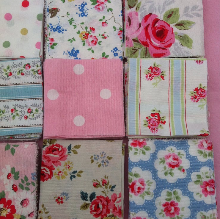 40 x gorgeous fabric squares 4" x 4" all in cath kidston fabrics ideal for patchwork , quilt making , and sewing projects