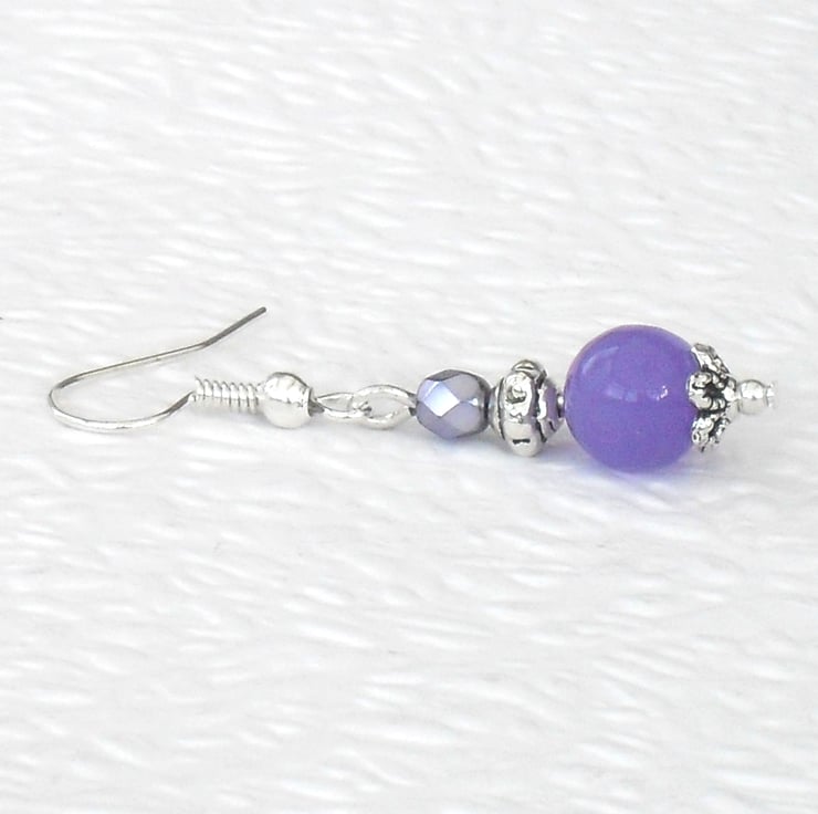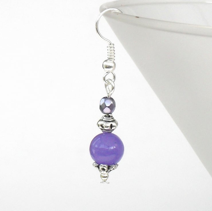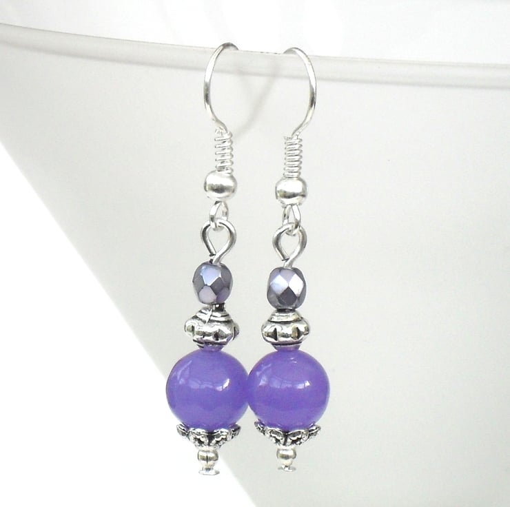 The lilac and purple look great together and the tibetan silver bead adds an additional touch of originality to these unique earrings.