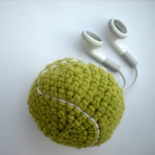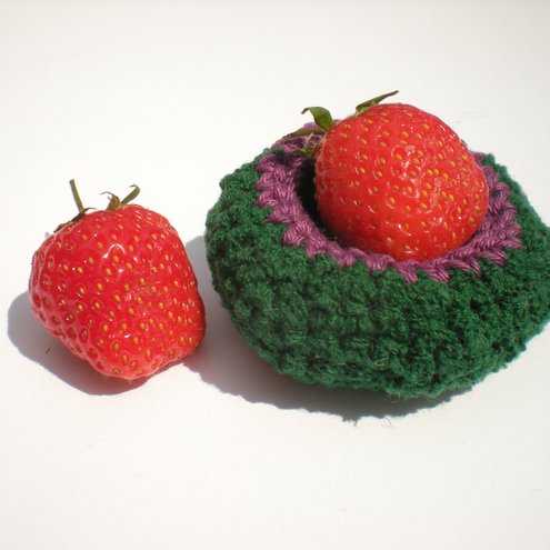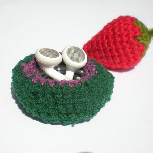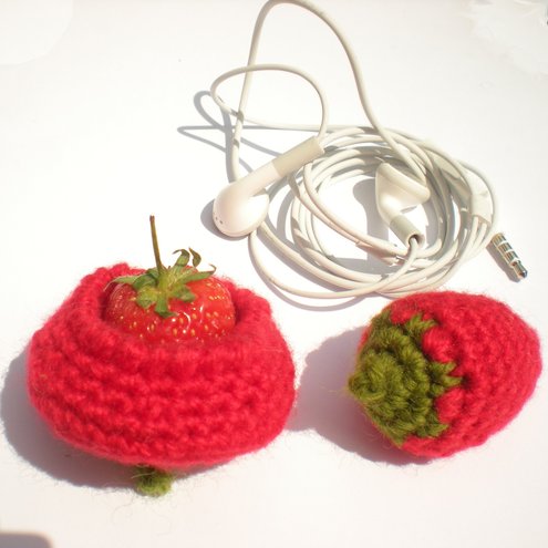 Use a strawberry cosy to stash your earbuds or hands-free-kit in when you get to the match… or office!