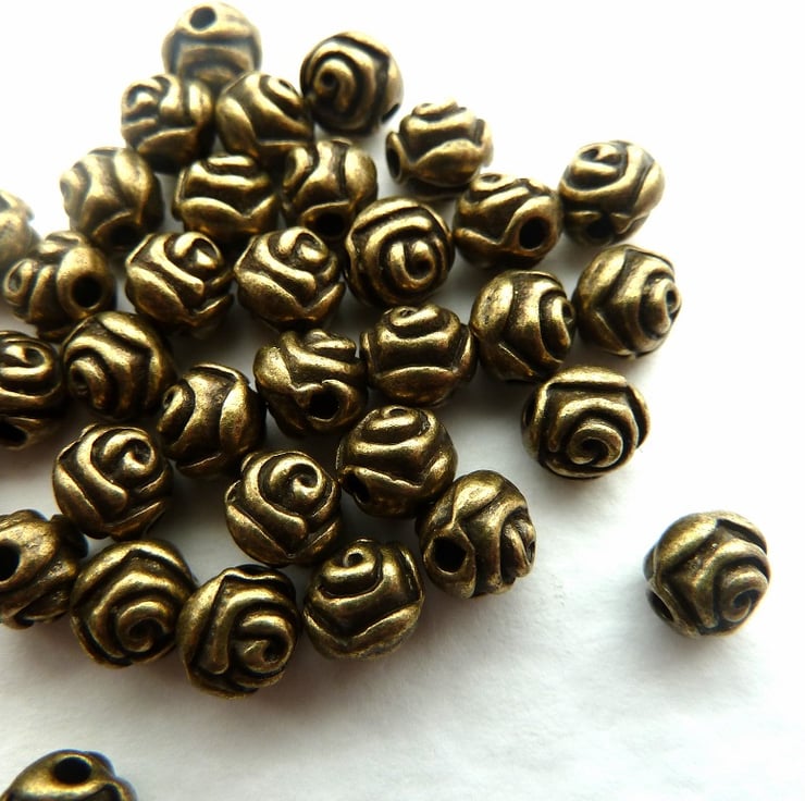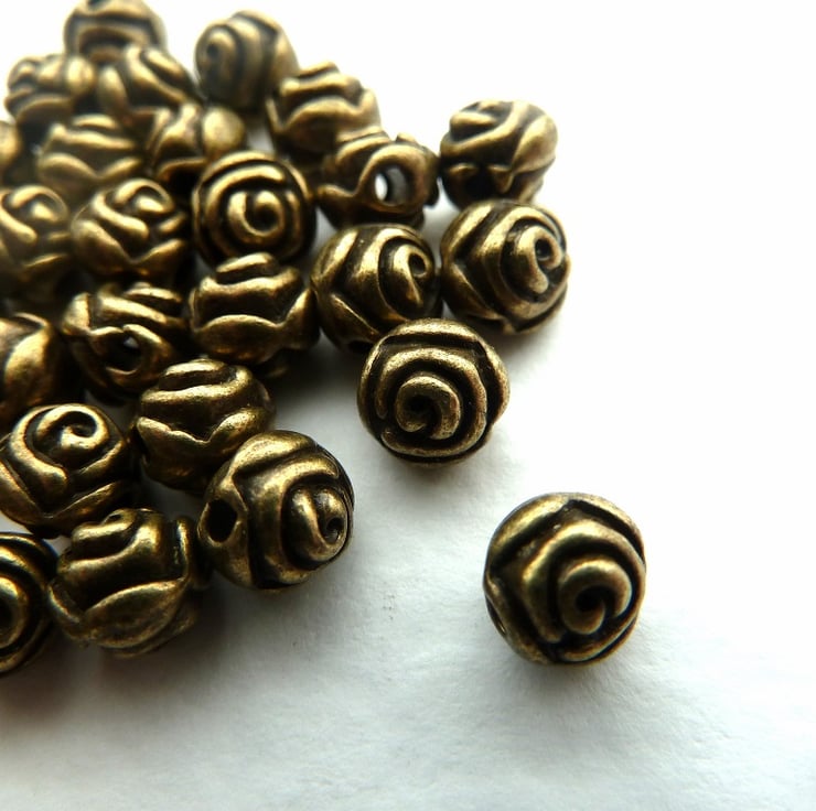 A pack of 20 bronze rose beads.