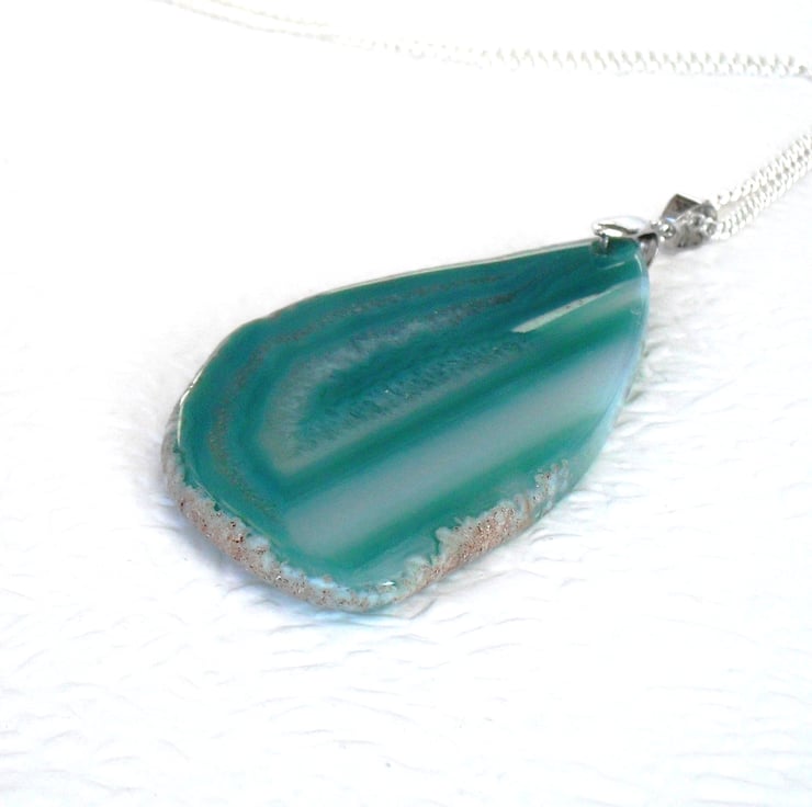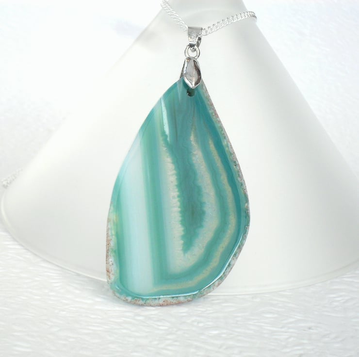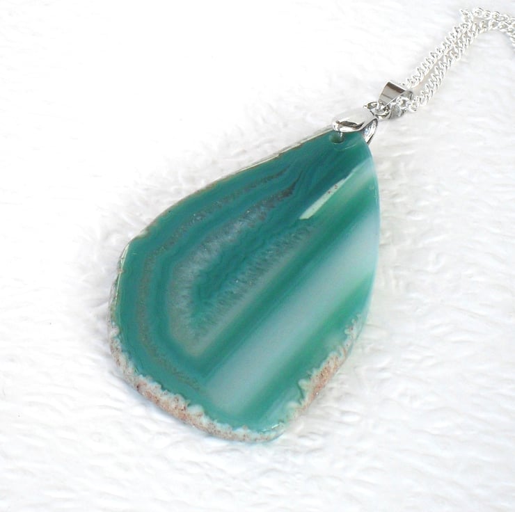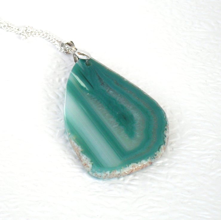 A stunning green agate pendant, showing lovely unique bandings.
