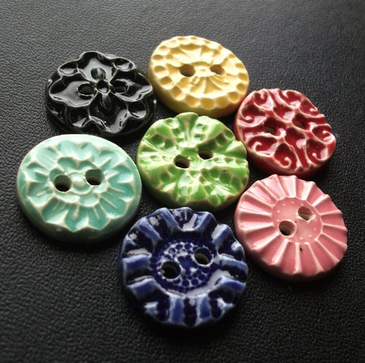 Set of six little handmade ceramic buttons