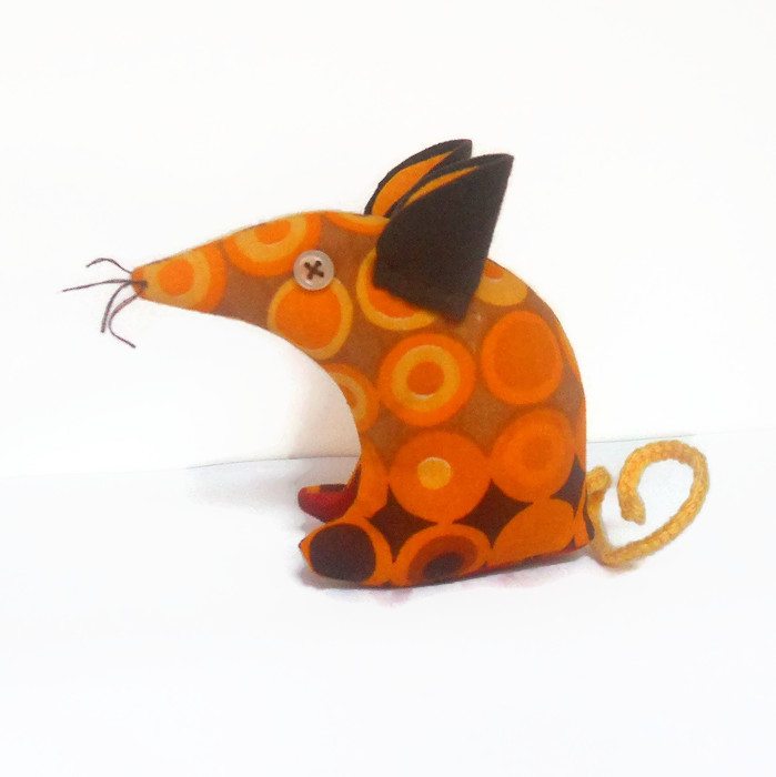 Retro Mouse in 60s orange and brown dot vintage fabric Autumn colours from WittyDawn