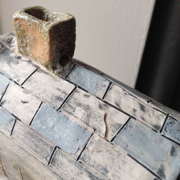 Rach side of the house has different characteristics so the position of it can be changed to view a different angle if required. The body of the house has been left unglazed, with a contrasting glazed roof and doors. Different sized and shaped windows have been added to this house, and a crater glaze has been applied for texture on the chimney. There is also a letterbox on one of the doors.