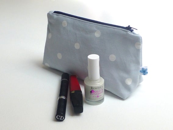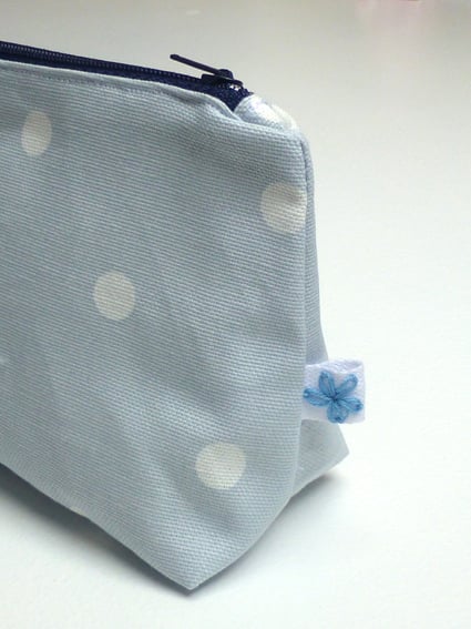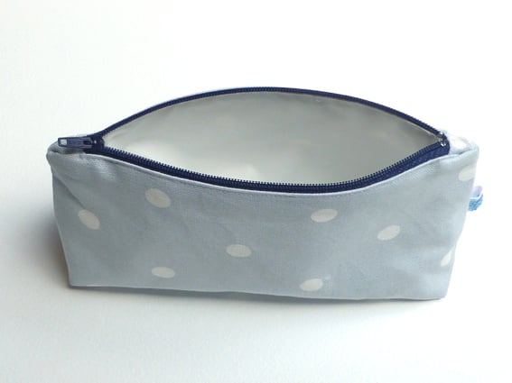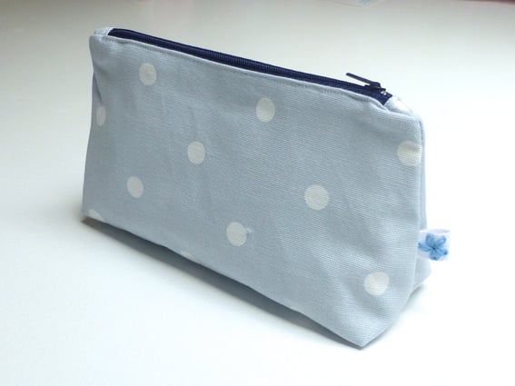 Clarke & Clarke "Dotty" heavyweight cotton fabric and a contrasting navy blue zip.