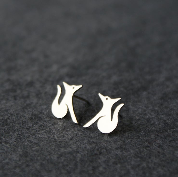Sweet little earrings featuring 2 tiny stylised foxes in a frosted finish. The ear pins are sterling silver and come with silver scrolls. Your earrings may vary very slightly from the image.