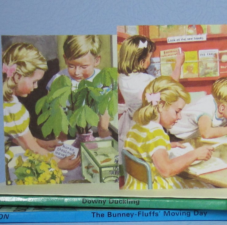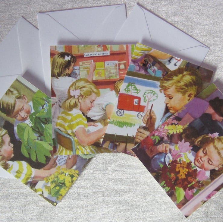 4 note cards made from the pages of a vintage Ladybird book. Each card measures 88 x 114 mm (3.5 x 4.5 inches) and comes with a quality envelope.