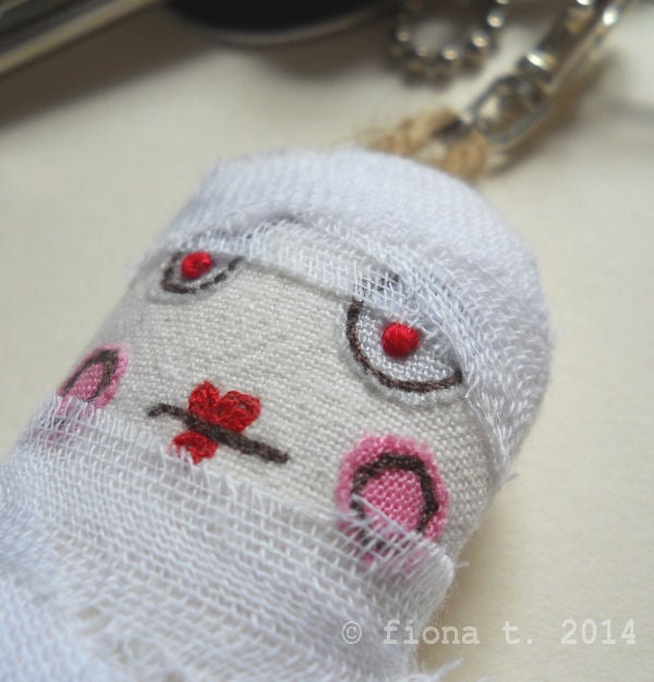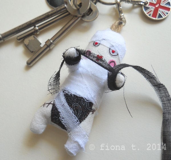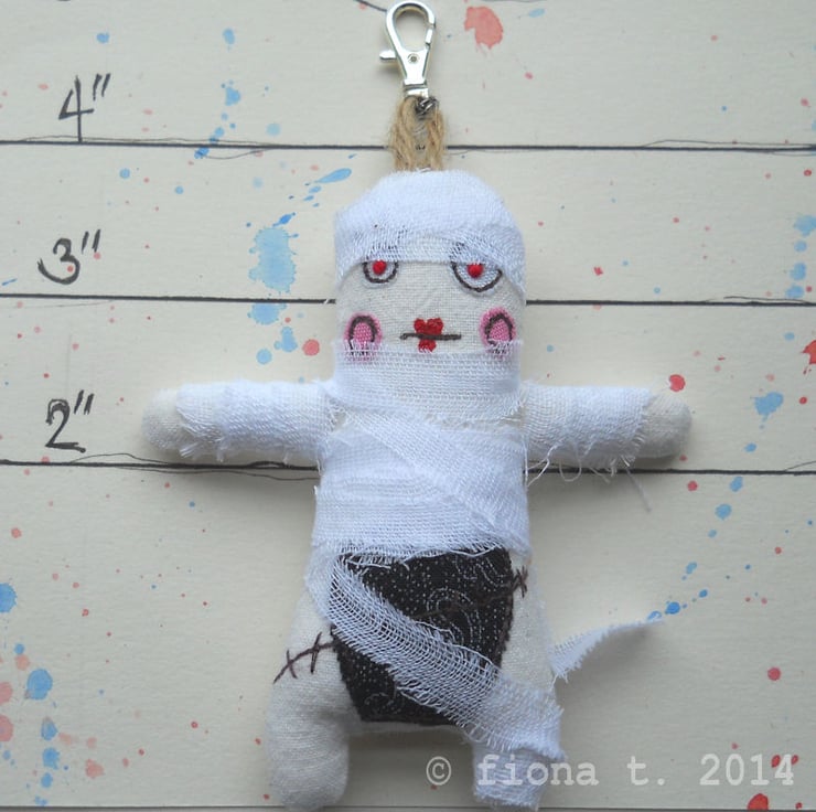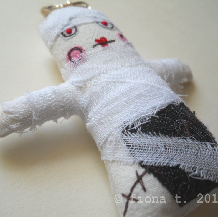 embroidered bag charm or key ring – miniature zombie mummy