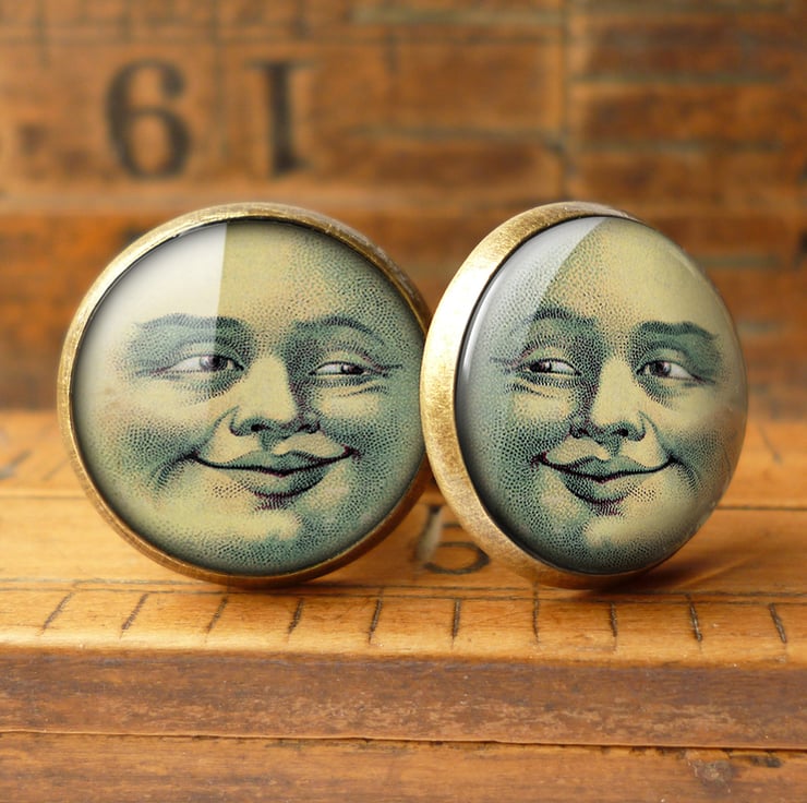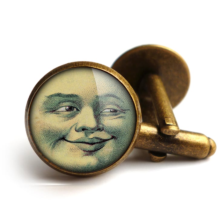 A beautiful pair of cufflinks featuring a Victorian image of a pretty jovial-looking 'man in the moon'! This design is part of the 'Eclectic Range'.