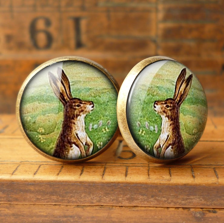 A beautiful pair of cufflinks featuring a Victorian illustration of an upright hare. This design is part of the 'Eclectic Range'.