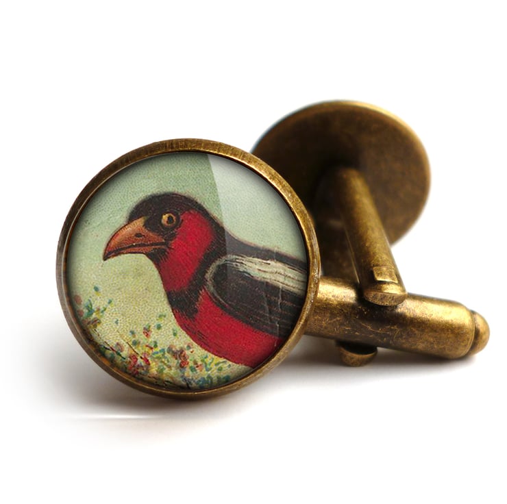A beautiful pair of cufflinks featuring an image of a bird taken from a vintage scrap. This design is part of 'The Birds' range.