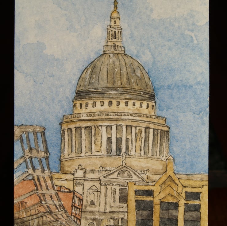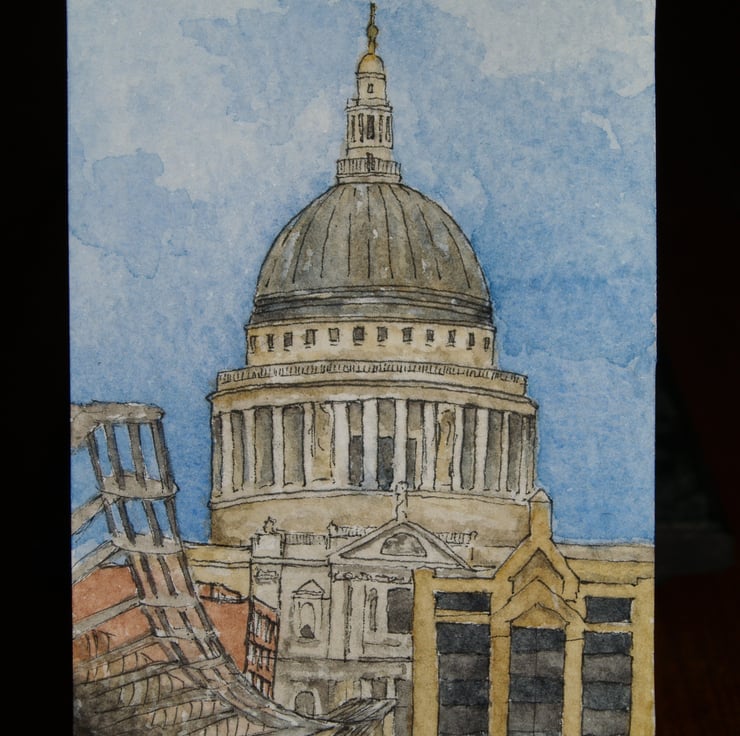 I really enjoy painting watercolour and ink versions of buildings! I'm influenced by any architecture, but like the history of St. Paul's against the modernity of the Millennium Bridge.