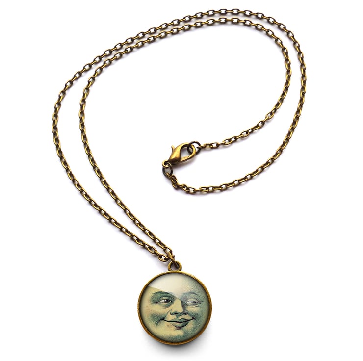 A gorgeous necklace featuring a Victorian image of a pretty jovial-looking 'man in the moon'! This design is part of the 'Eclectic Range'.