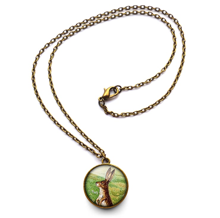 A gorgeous necklace featuring a Victorian illustration of an upright hare. This design is part of the 'Eclectic Range'.