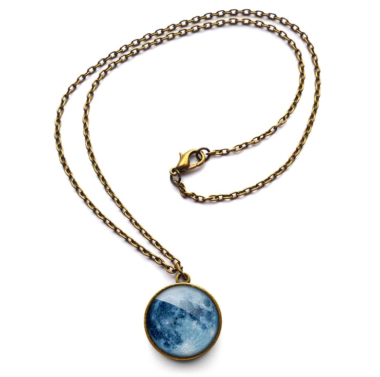 A gorgeous necklace featuring a beautiful image of the moon, tinted blue to make it even more irresistible! This design is part of the 'Eclectic Range'.
