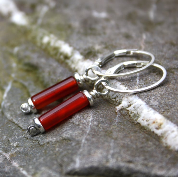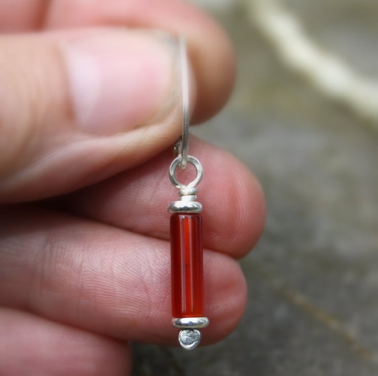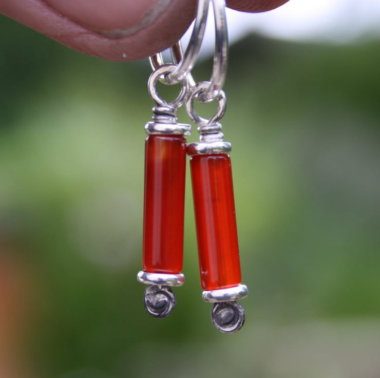Forged sterling silver pins have been threaded through 5mm silver washer beads and juicy carnelian tubes.