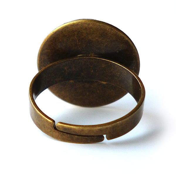 SIZING: As an idea of scale, the image on the ring measures 18mm in diameter. The diameter of the part you put your finger through is 19mm but is adjustable to make it larger, or smaller if you overlap the ends slightly.