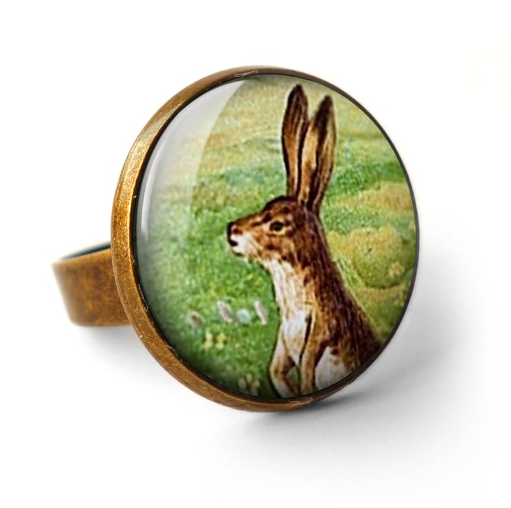 A gorgeous ring featuring a Victorian illustration of an upright hare. This design is part of the 'Eclectic Range'.