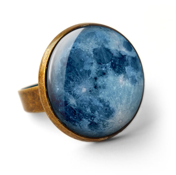 A gorgeous ring featuring a beautiful image of the moon, tinted blue to make it even more irresistible! This design is part of the 'Eclectic Range'.
