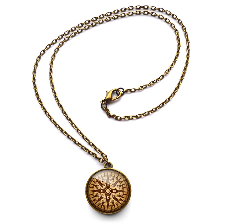 A gorgeous necklace featuring an image of a ship's compass. This design is part of the 'Dark Journey' range.