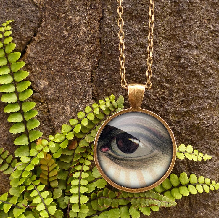 A gorgeous necklace featuring a Victorian image of an eye - the Eye of Providence often seen in Masonic imagery. This design is part of the 'Eclectic Range'.