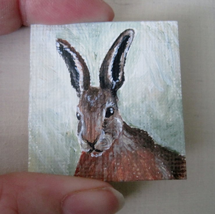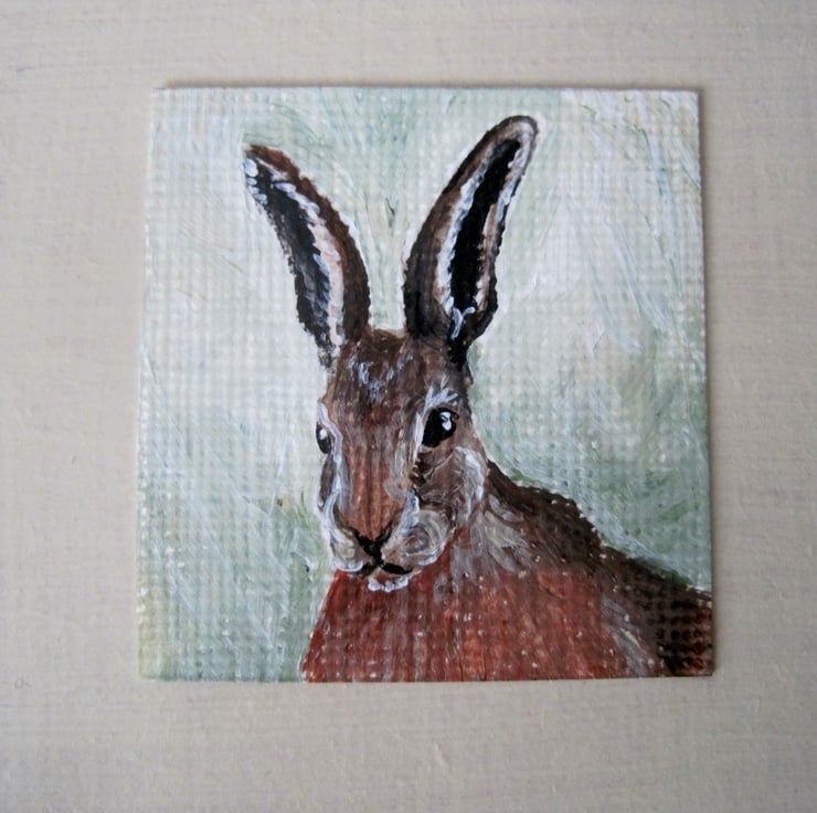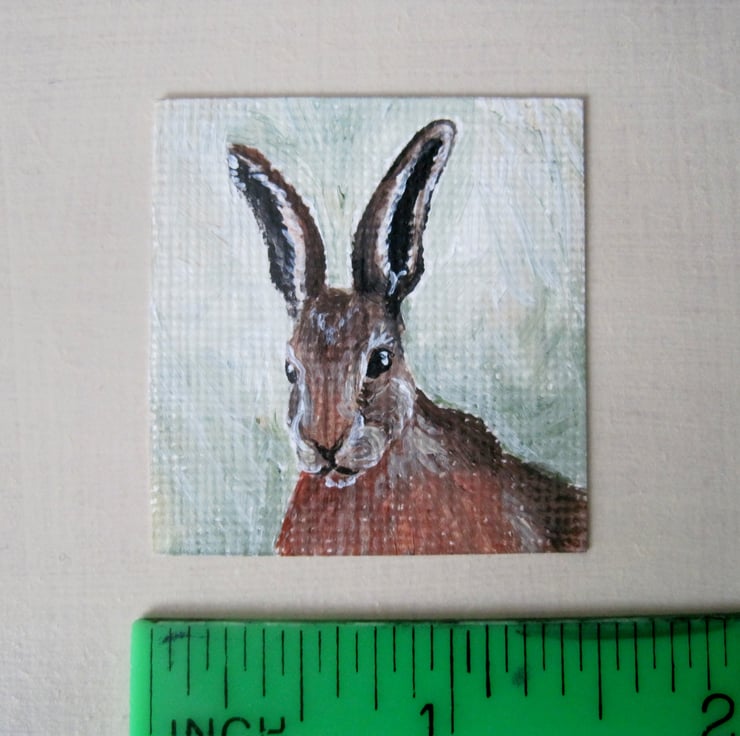 This is an original acrylic painting of a hare, on 1.5" x 1.5" acrylic canvas paper. Ideal size for a 1/2 (one twelfth) scale dolls house or 1/10 (1 tenth scale) dolls house).