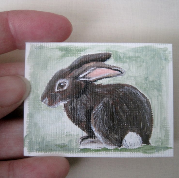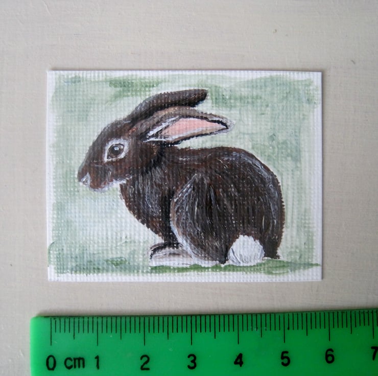 This is an original acrylic painting of a rabbit, on 6 x 4 cms acrylic canvas paper. Ideal size for a 1/2 (one twelfth) scale dolls house or 1/10 (1 tenth scale) dolls house).