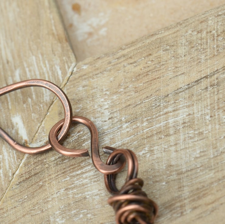 The bracelet has totally been constructed by me from bare copper wire which I have shaped, hammered, oxidised with liver of sulphur to give an antique feel and then polished and finished.
