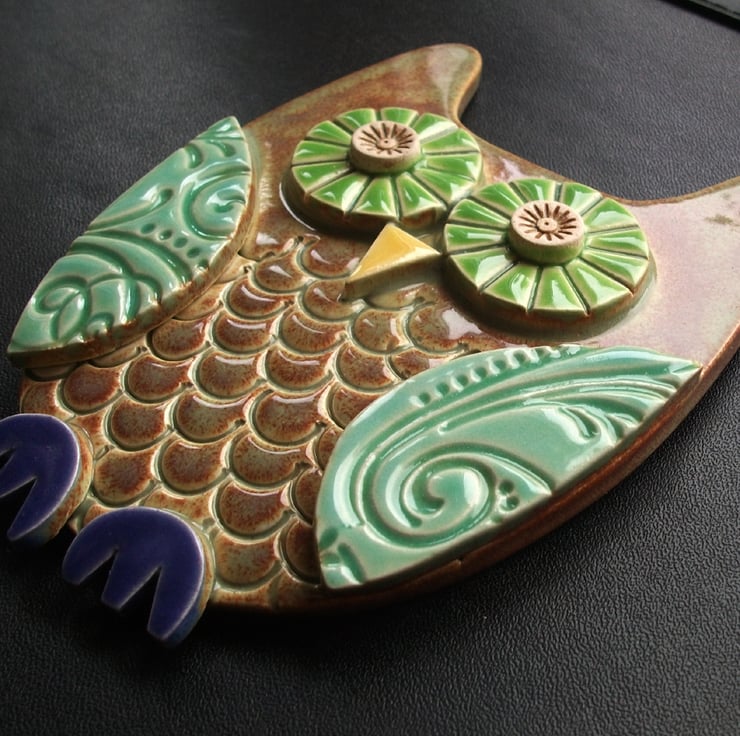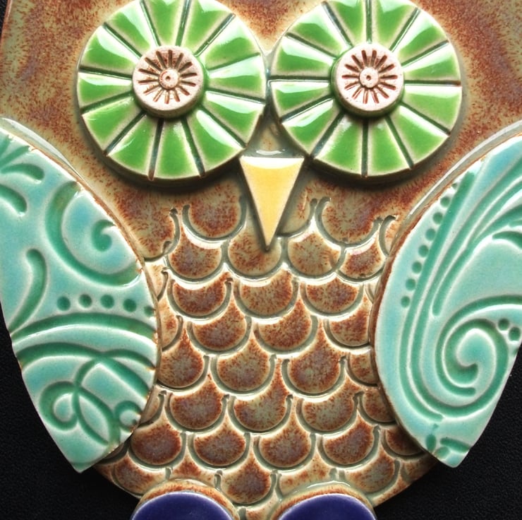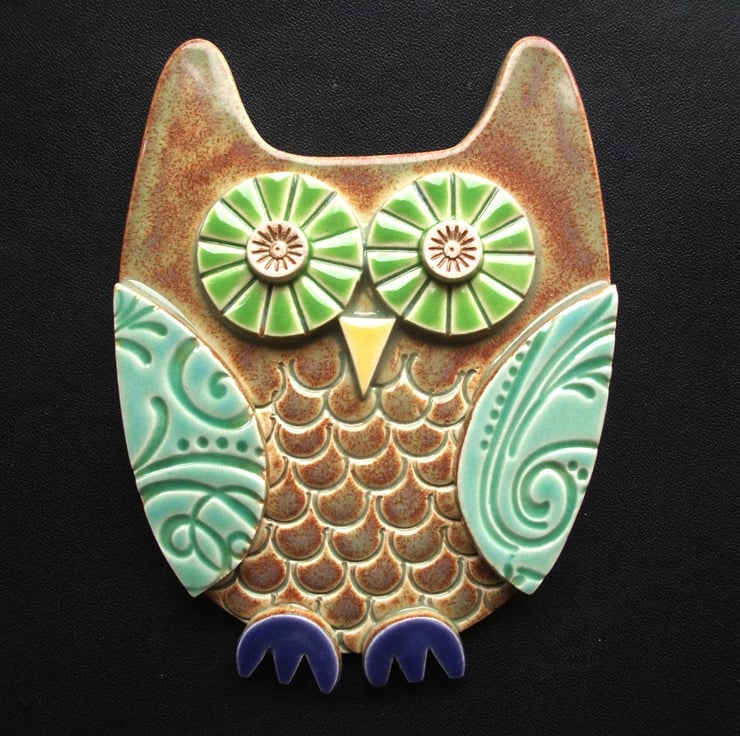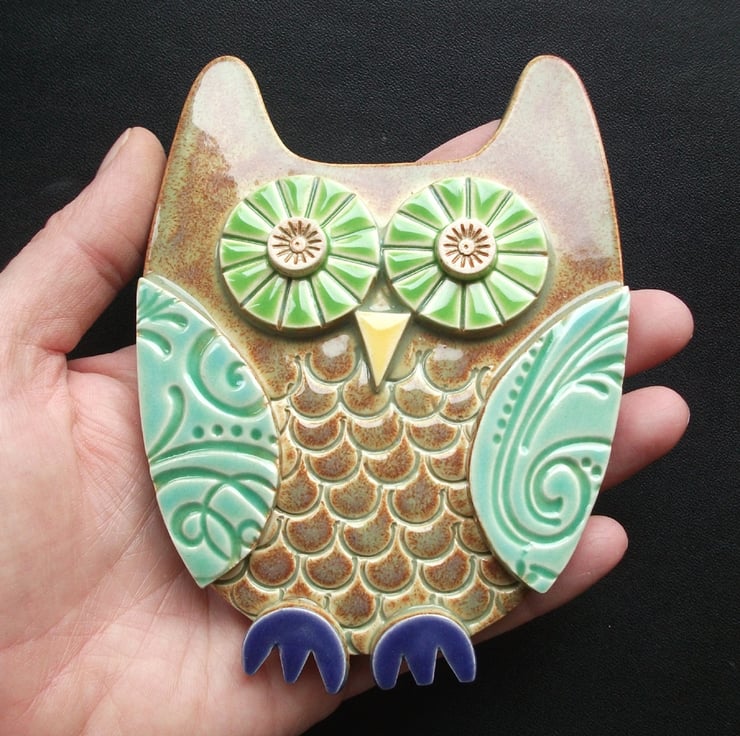 This cute ceramic owl is made from white earthenware clay with all the individual pieces hand cut and decorated.