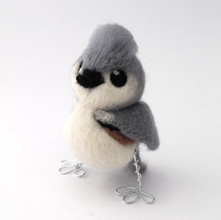 Mini Tufted titmouse, Needle felted bird made from softest merino wool. This little titmouse is one of our best sellers. She is super sweet and a great little stocking filler or perfect as a present for yourself.