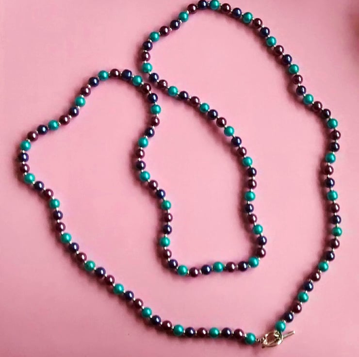 Since i was so smitten with the Multi-coloured Glass Pearl necklace I decided to make one with three of my favourite colours.