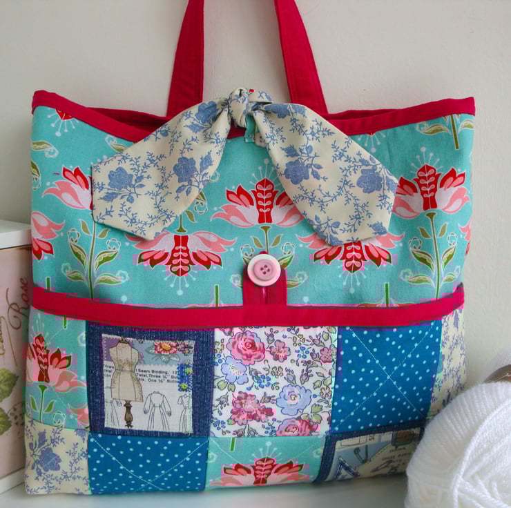 A lovely Craft bag , which is ideal for storing a selection of small craft projects - knitting - crochet - tapestry - etc. Also great for transporting your project to a Craft club.