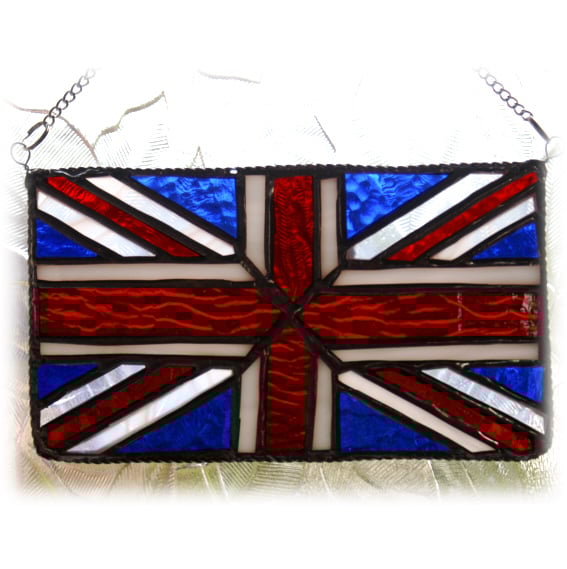 This is a handmade stained glass suncatcher entirely handmade using the Tiffany copper foil technique.