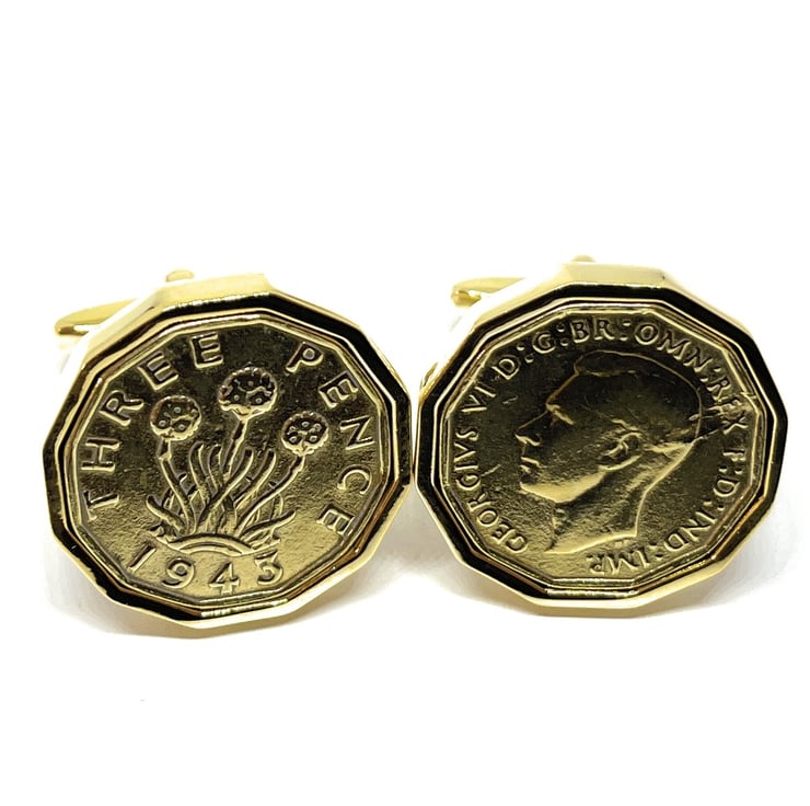 1943 Threepence Coin Cufflinks Men's 81st Birthday Gift / Present / Anniversary