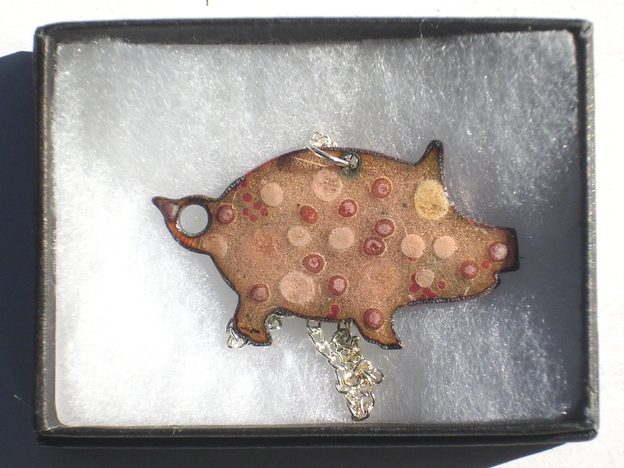 The pig shape measures 39mm, snout to tail, 21mm ear-tip to trotter.