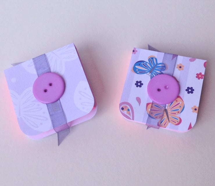The ribbon wraps around the notebook and ties at the back, they are embellished with a beautiful pastel button.