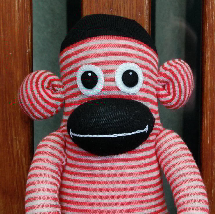Gilbert is a lovely red, grey and black striped monkey. He was handcrafted from brand new socks and filled with polyester fibrefill conforming to EN71, CE marked and safe for babies, children and adults too!