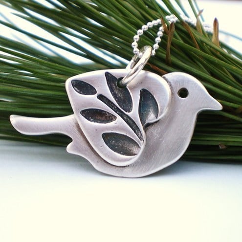 This pendant is just so cute! I hand crafted this little bird from fine silver and then gave him a beautiful little textured heart wing!
