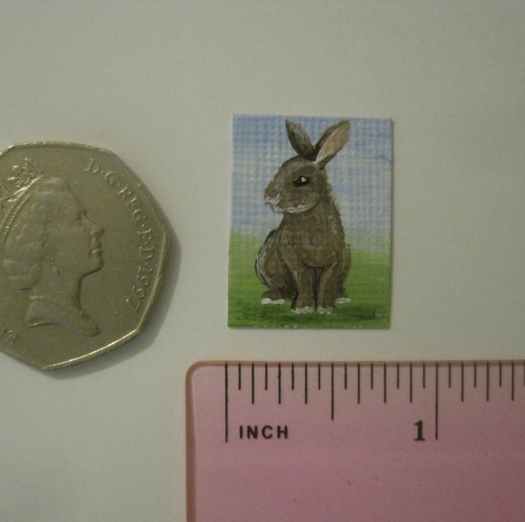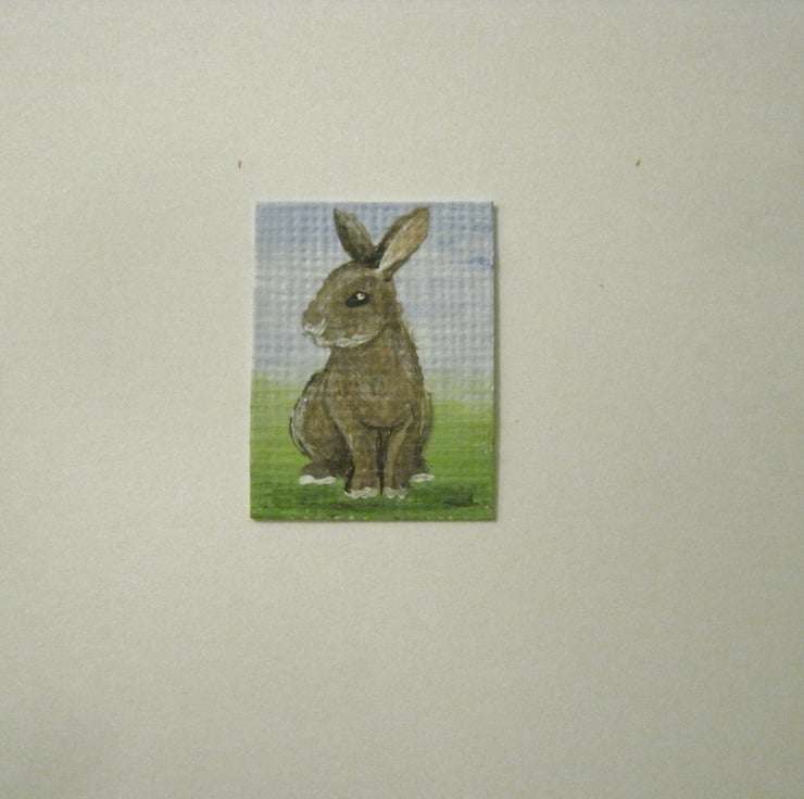 This is a tiny original painting of a bunny, ideal for use in a 1:12 or 1:18 scale dolls house.