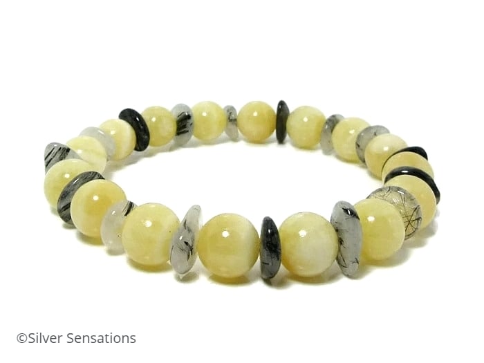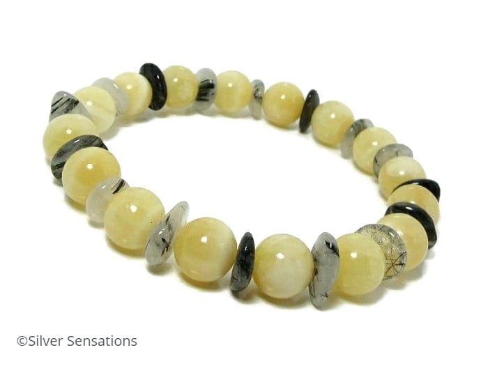 For this handmade stretch bracelet I chose a mixture of Honey Quartz & Rutilated Quartz beads.