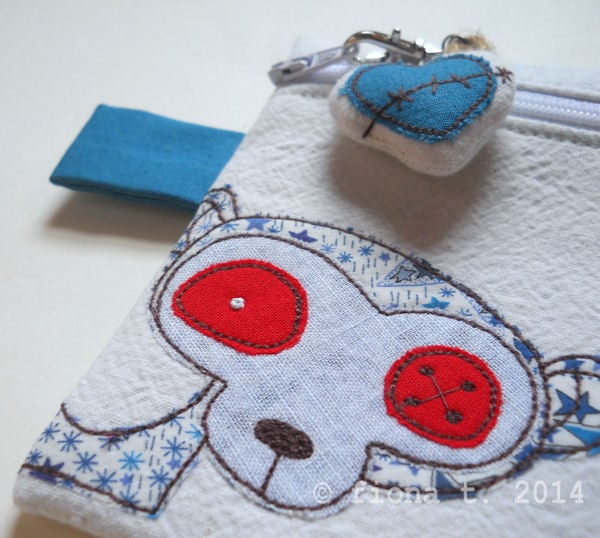 a tiny stuffed zombie heart charm is attached to the zip pull.