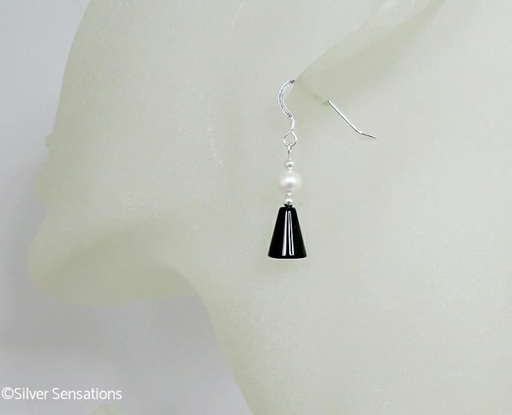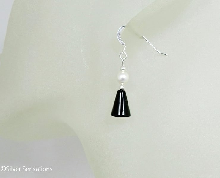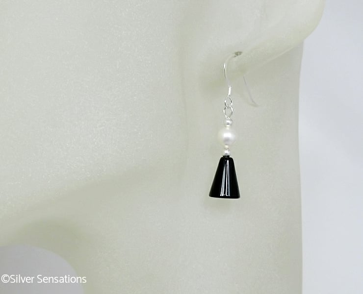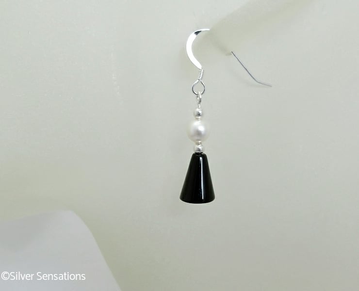 These simple handmade black and white beaded earrings have been created with plain Black Onyx cone shaped beads which are 8mm x 10mm in size.