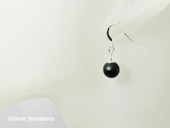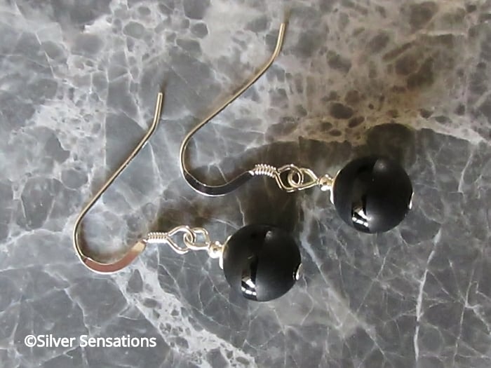 These hand made earrings have been created with beautiful frosted Black Onyx round beads which are 8mm in size. These beads have a glossy stripe around the middle of the beads.